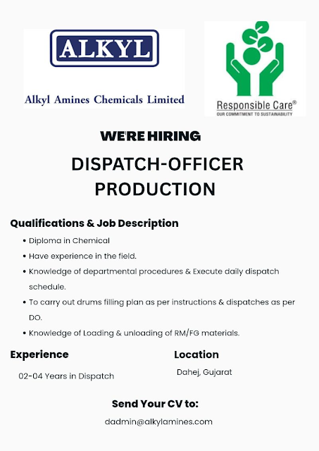 Alkyl Amines Chemicals Hiring Dispatch Officer – Dahej Gujarat