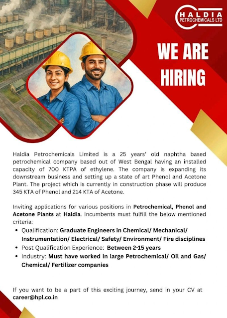 All roles are based at HPLβs plant in Haldia, West Bengal.
