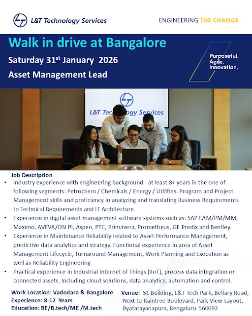 Looking to accelerate your career with high-value engineering projects in the Oil & Gas, Petrochemical, and Chemical industries? L&T Technology Services (LTTS) is conducting a mega Walk-in Drive in Bangalore for experienced engineering and management professionals.