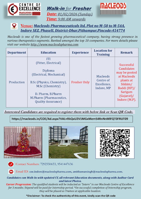 📧 Email: coe.indore@macleodspharma.com | amitkumarsingh@macleodspharma.com