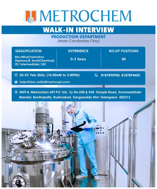 Metrochem Walk-In Interview 2026 – Production Jobs for Freshers & Experienced in Hyderabad
