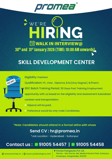 Promea Therapeutics Walk-In Interview 2026 – Freshers Pharma Jobs | Hyderabad