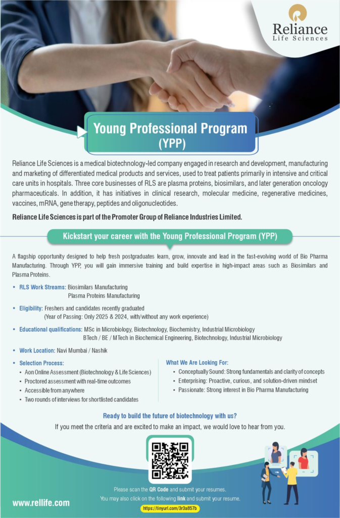 Through its Young Professional Program (YPP), Reliance Life Sciences aims to nurture young scientific talent by providing structured learning, mentorship, and real-world exposure in cutting-edge biopharma manufacturing environments.