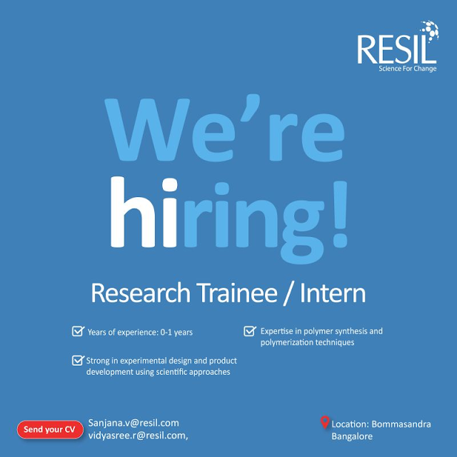 Resil ChemicalsΒ Hiring Research Trainee Intern for Polymer Chemistry R&D in Bangalore