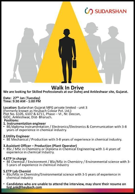 Sudarshan Walk-In Drive Gujarat β Chemical Industry Hiring