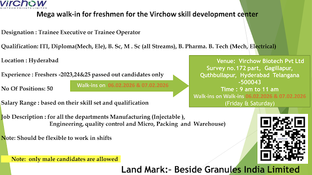 If you are a fresher looking to enter the pharmaceutical industry, the Virchow Group Walk-In Interview 2026 offers a strong starting point with hands-on training, GMP exposure, and long-term growth potential in Hyderabad.